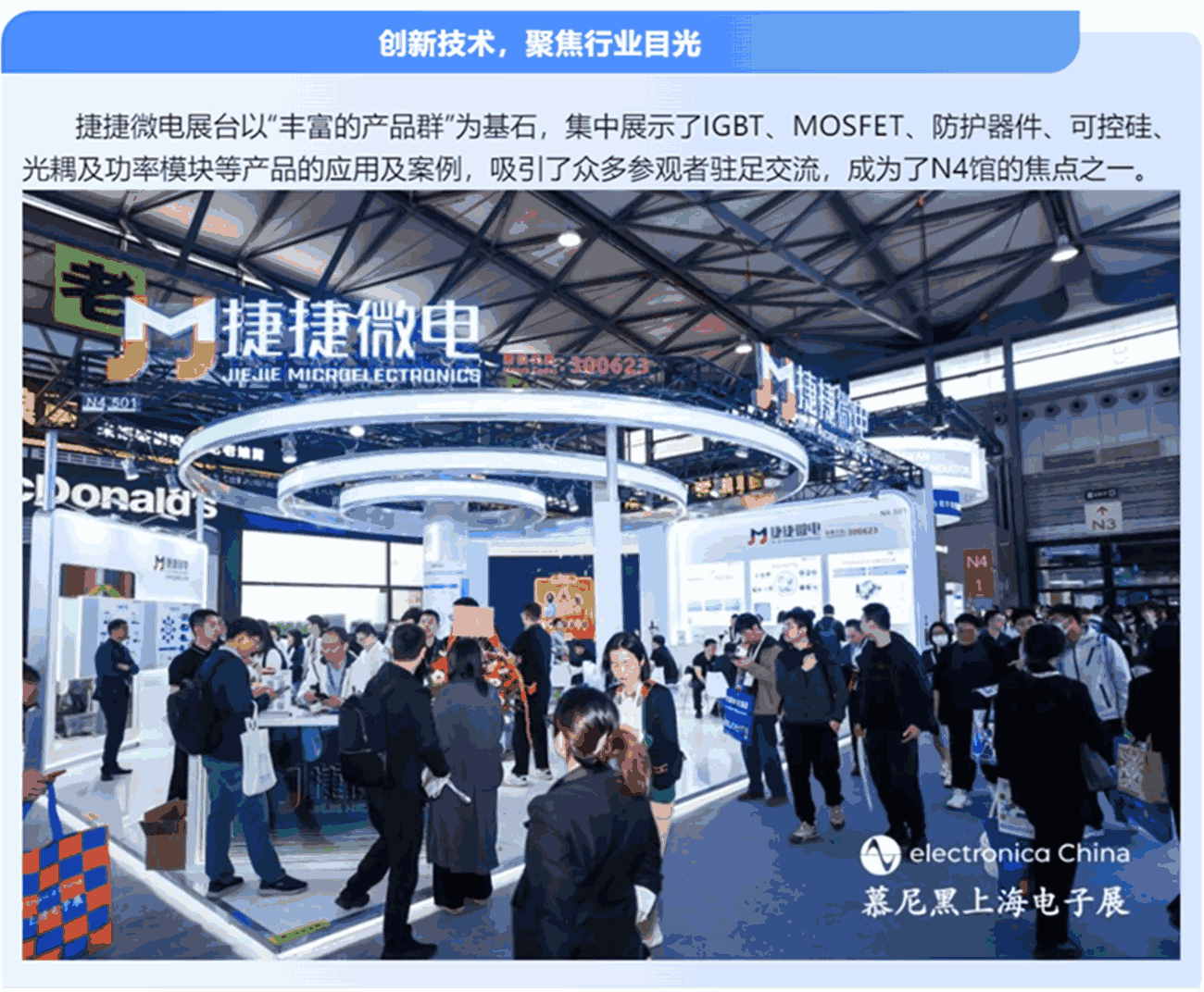2025年4月15日至17日,慕尼黑上海电子展(Electronica China)在上海新国际博览中心盛大启幕。作为电子行业的年度盛会,合乐HL8集团微电携IGBT、MOSFET、防护器件、可控硅、光耦及功率模块等产品,以创新之姿亮相慕尼黑电子展,与全球客户、合作伙伴及行业专家共话前沿科技,开启了一场充满灵感与机遇的电子盛宴!