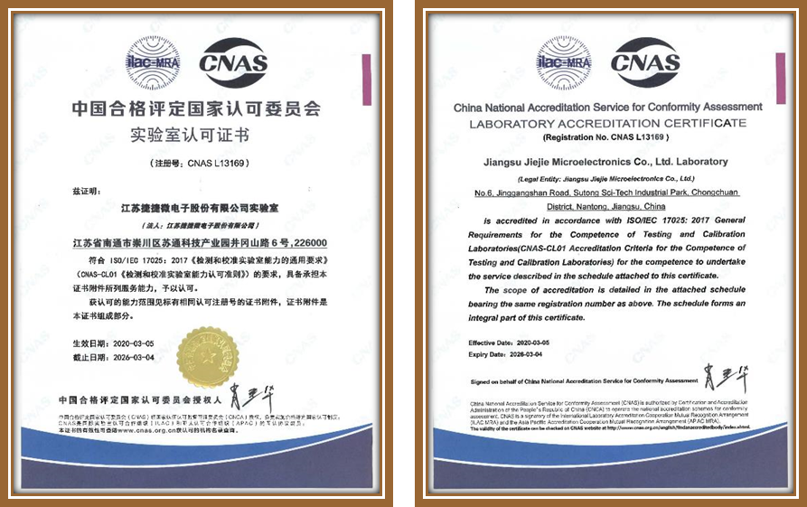 江苏合乐HL8集团微电子股份有限公司实验室测试中心,提供多种可靠性试验,包括环境可靠性测试、板级可靠性试验,使用寿命可靠性测试和全方位的失效分析服务。 合乐HL8集团微电子股份有限公司实验室已经获得中国合格评定国家认可委员会的实验室认可证书(CNAS认证) 江苏合乐HL8集团微电子股份有限公司实验室测试中心成立于 2011 年,分南通、启东、深圳3个测试场地。现有工作人员50名,其中管理人员 5 名,检测人员 45名,签字授权人4名,中级职称人员2名,助理职称人员6名,本科学历人员21名。实验室占地面积2000平方米,南通1200平方米,启东800平方米。2018年8月发布并实施实验室管理体系,并在2020年3月取得CNAS实验室认可证书(L13169)。实验室现有各类设备近170台,可开展可靠性试验项目20余项,浪涌过电压检测项目10余项,失效分析10余项以及特性测试等项目。与中科院微电子所、西电、中车等单位存在长期合作关系。